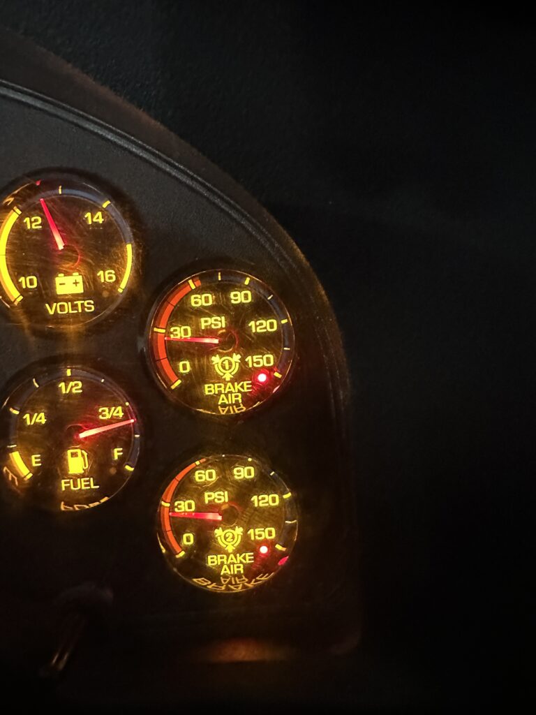 “The low pressure warning did activate properly so I will continue to fan the service brake in order to test the emergency brake. It should engage between 20 and 45 psi. Engagement is indicated by the Parking Brake popping out.”