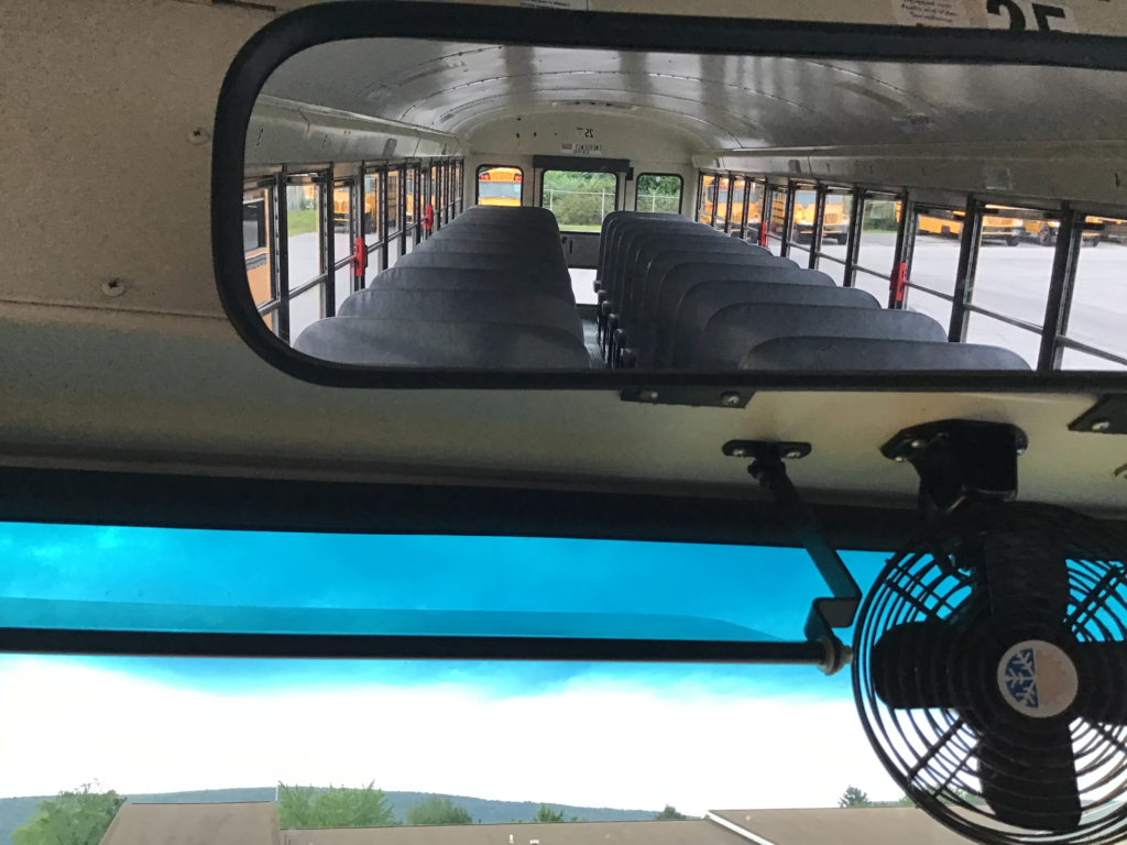 “The student mirror is securely mounted, clean, and adjusted to provide a clear view from the top of the front seat to the rear of the bus. I would also inspect all of the cameras to assure they are securely mounted an functioning as indicated by the green light.”